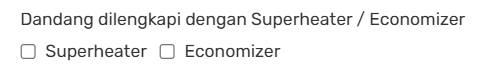 Sila klik butang checkbox untuk memilih Superheater/Economizer pada tab Maklumat Teknikal.
