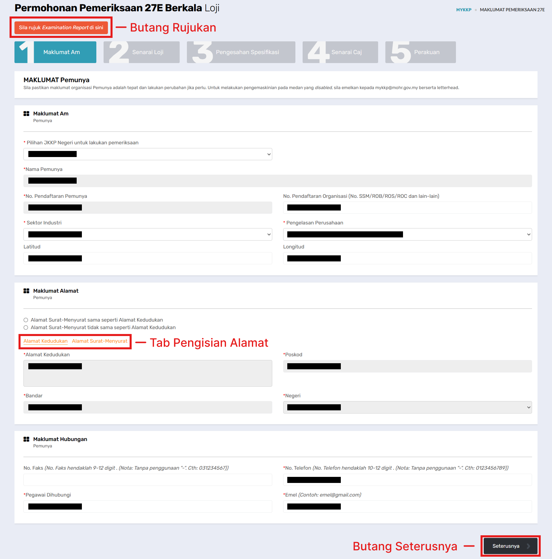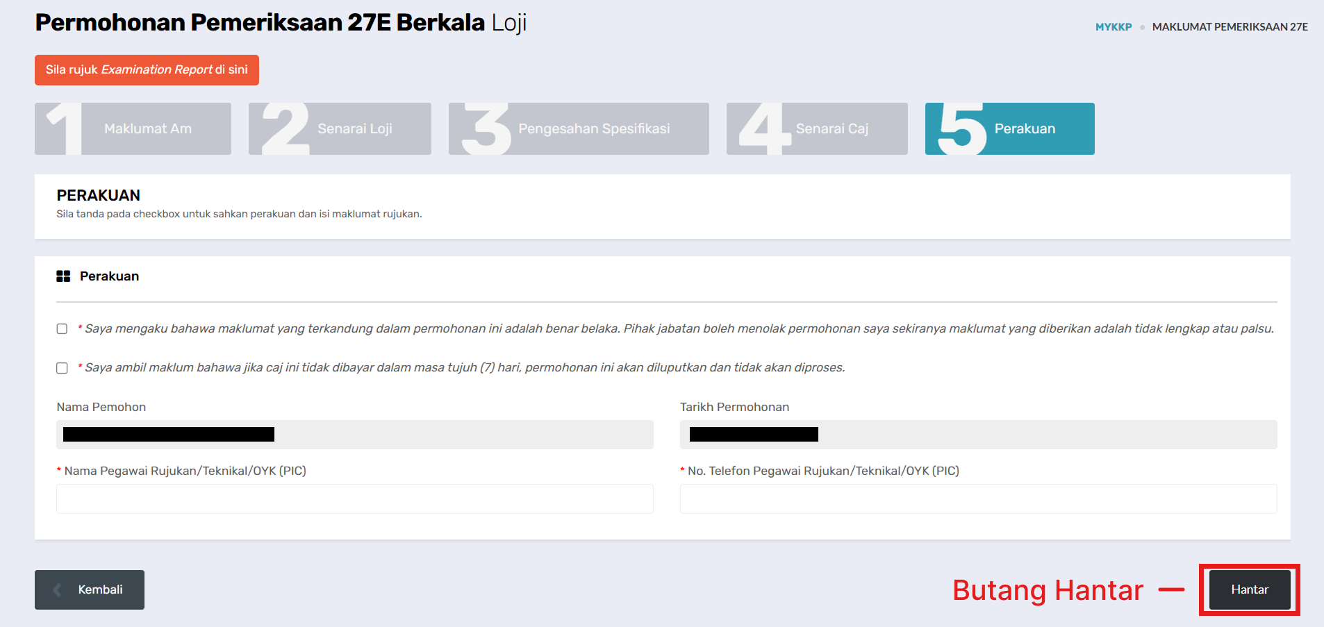 Langkah 3: Pengisian Borang Permohonan Pemeriksaan Berkala Loji