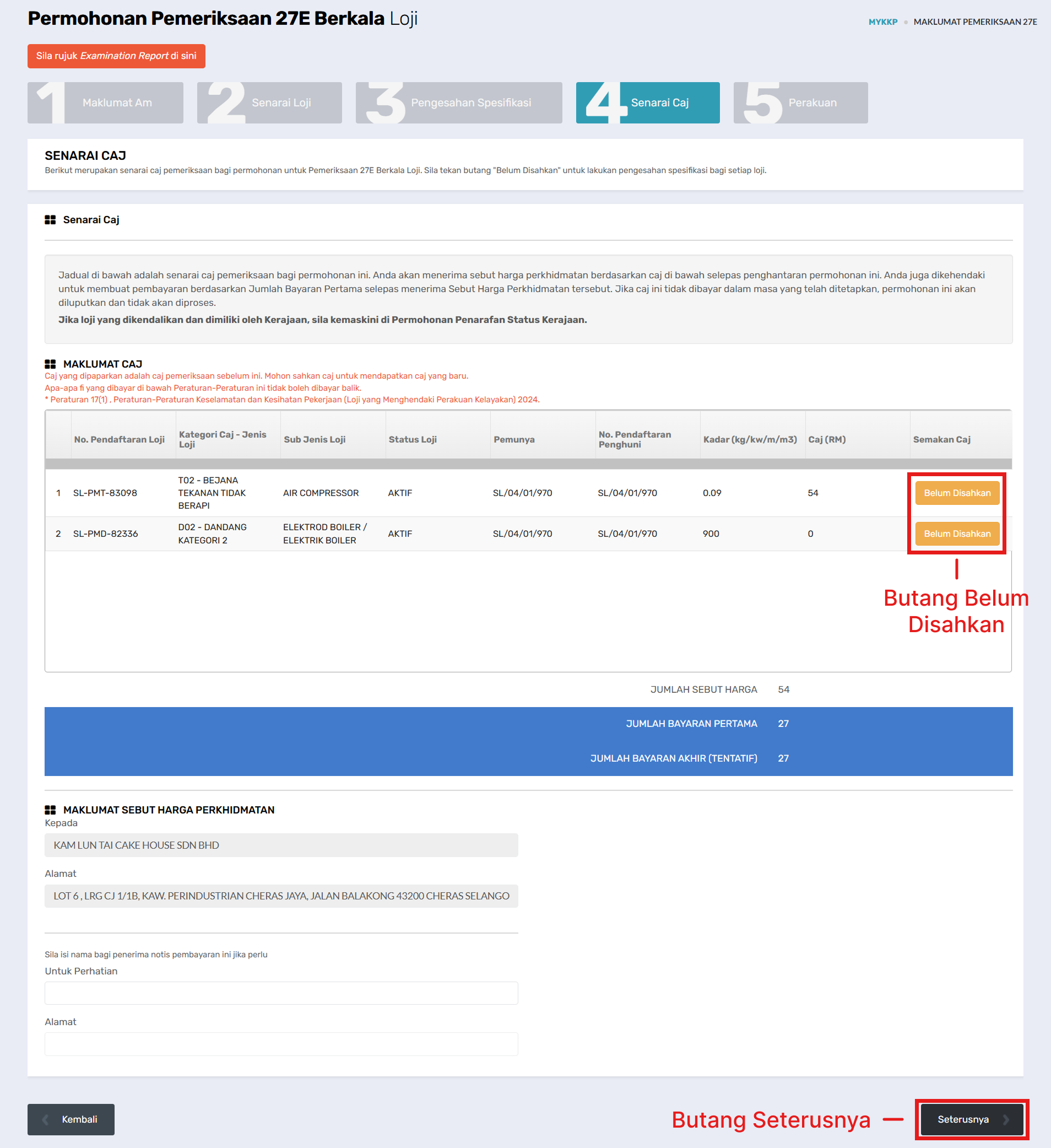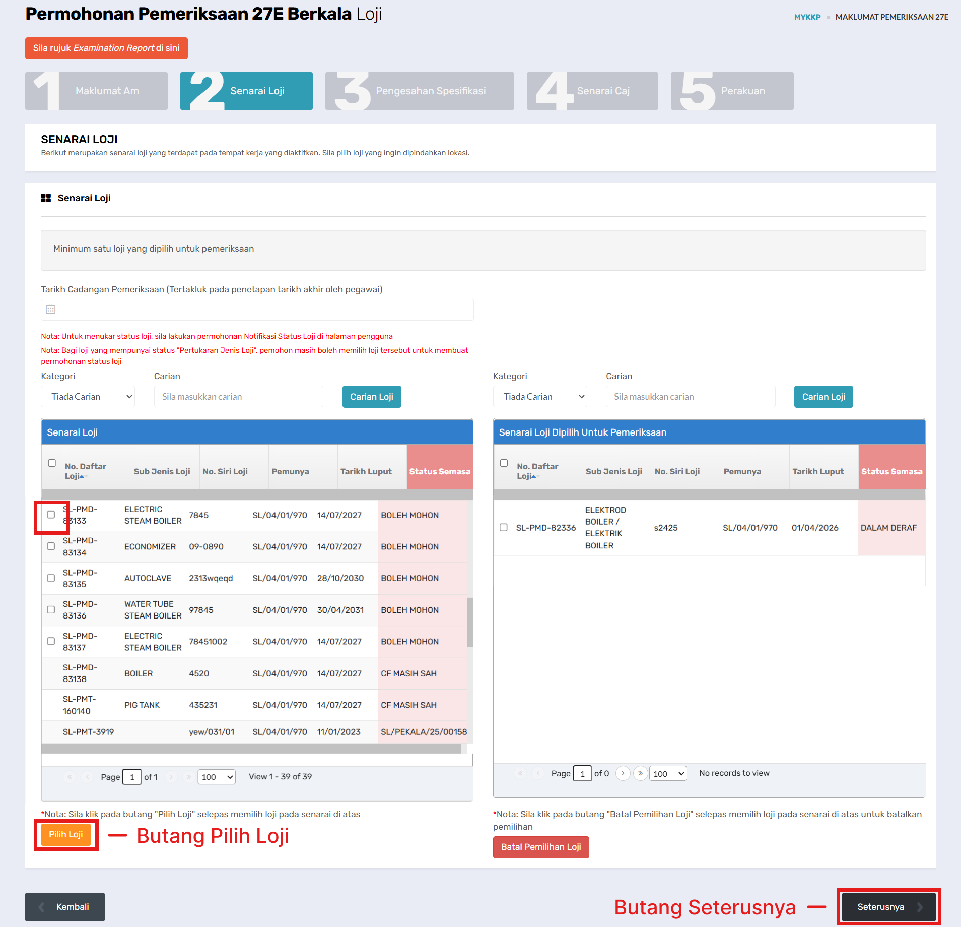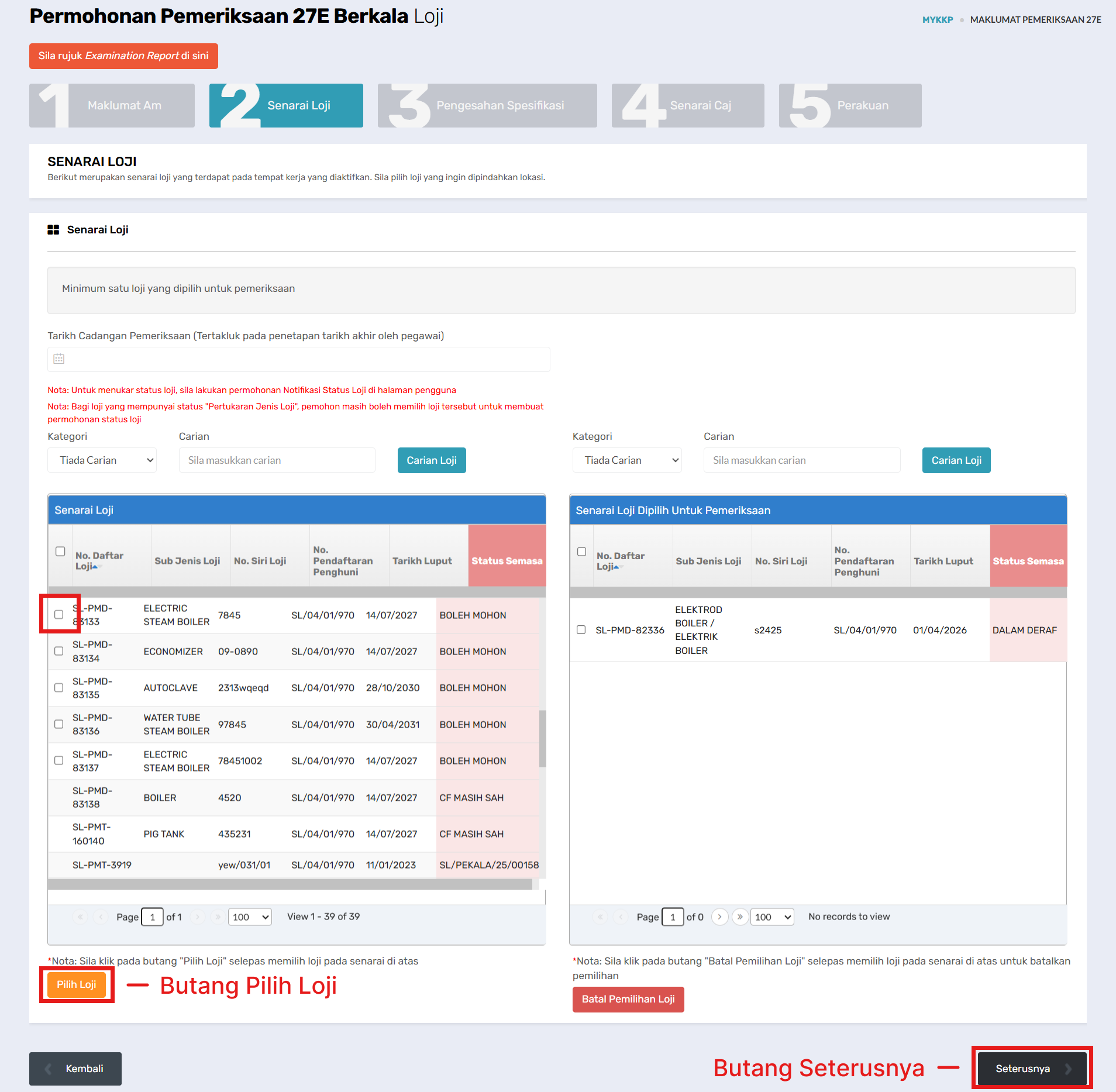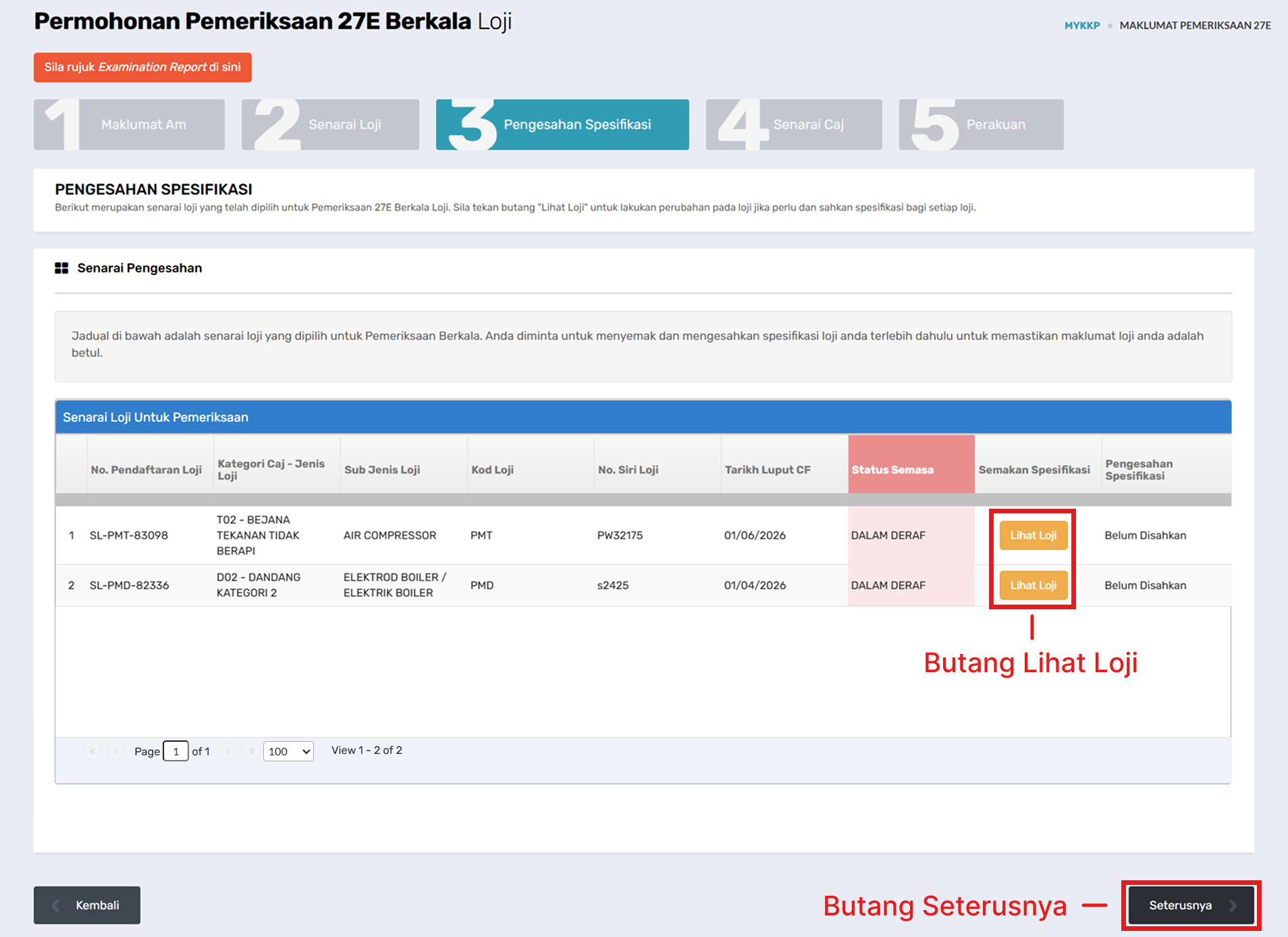 - Klik Pemeriksaan Berkala Loji Berperakuan.