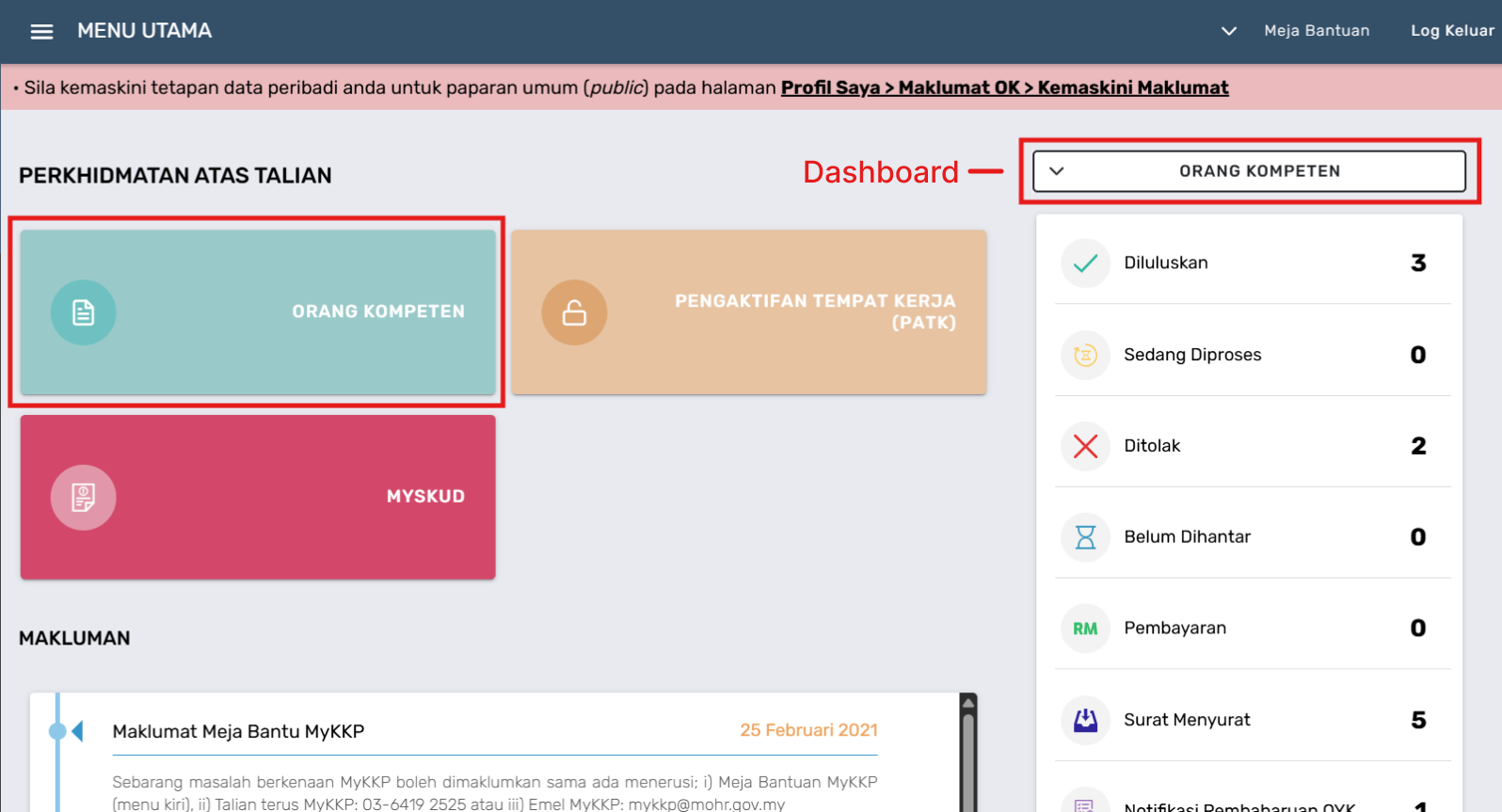 Pastikan dashboard yang dipilih adalah dashboard Orang Kompeten.