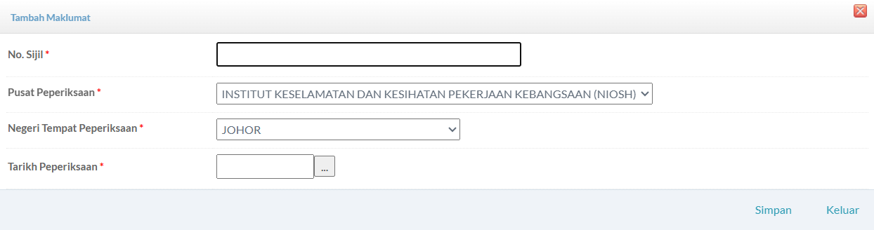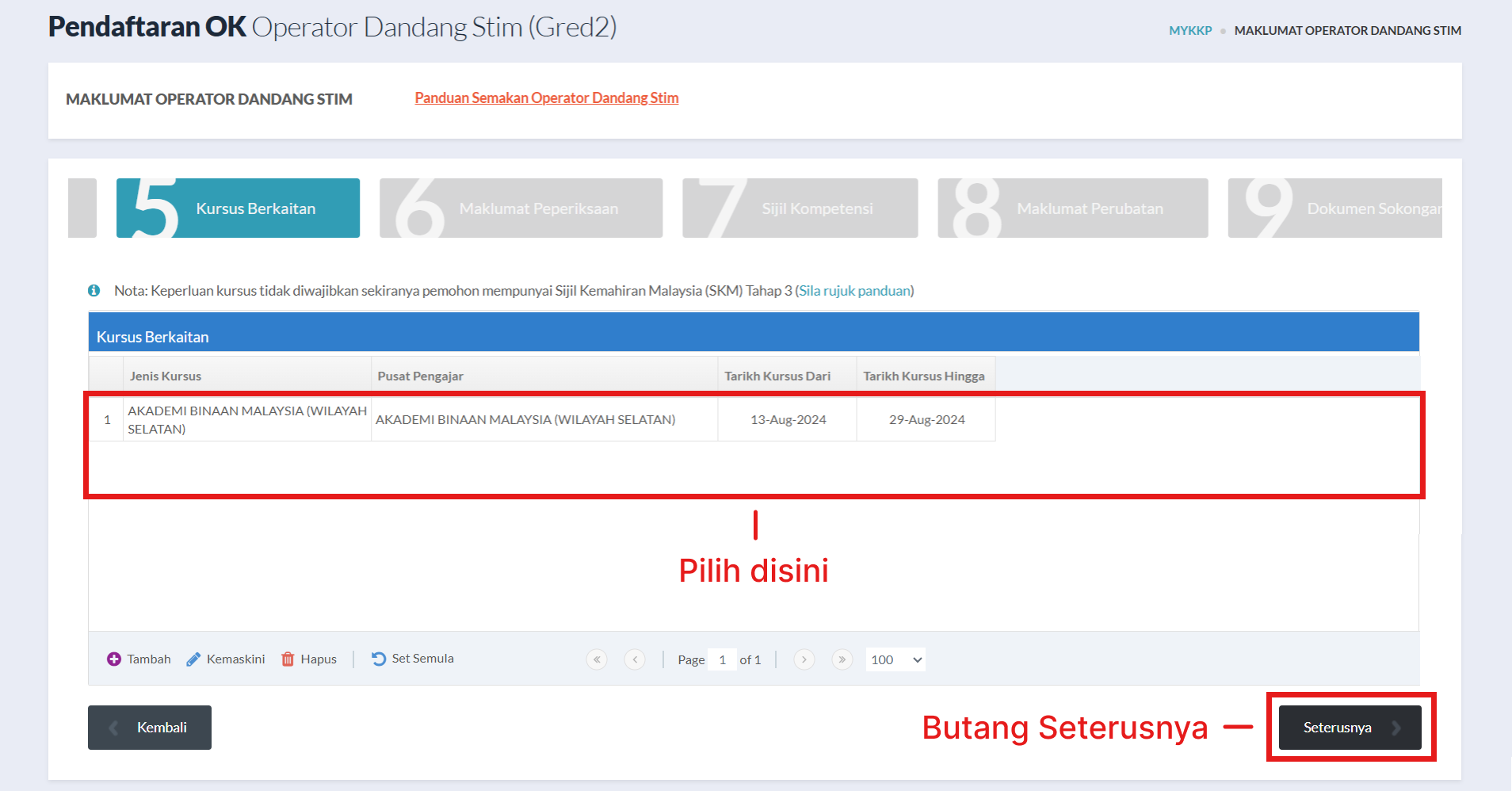 Halaman Pendaftaran OK Operator Dandang Stim (Gred 2) akan dipaparkan pada tab baru.