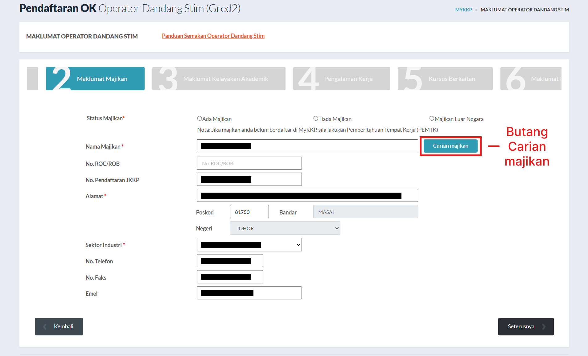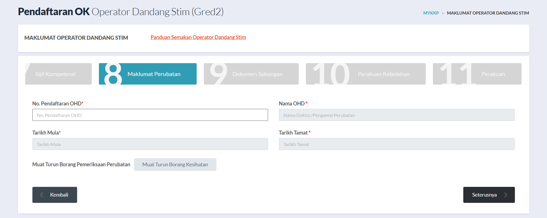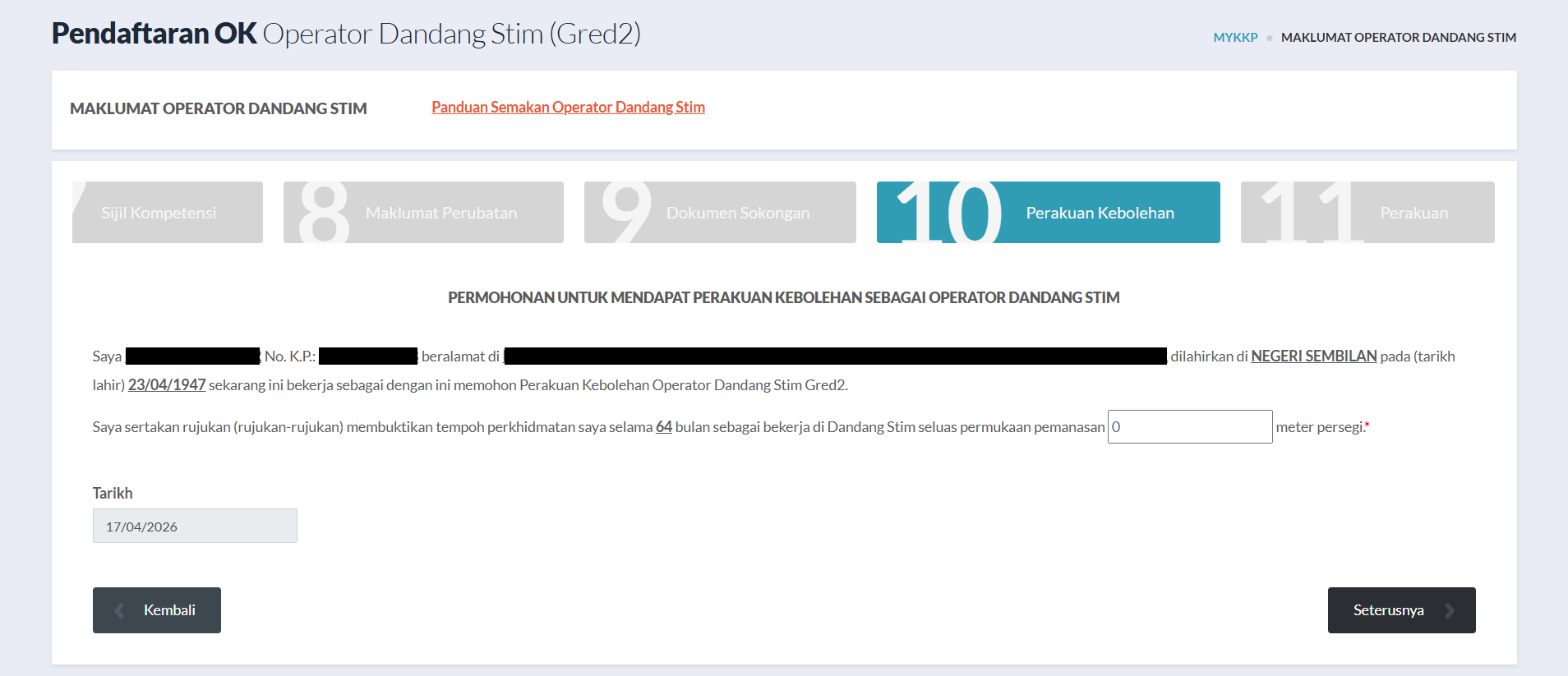 Langkah 3: Pengisian Borang Pendaftaran Operator Dandang Stim Gred 2
