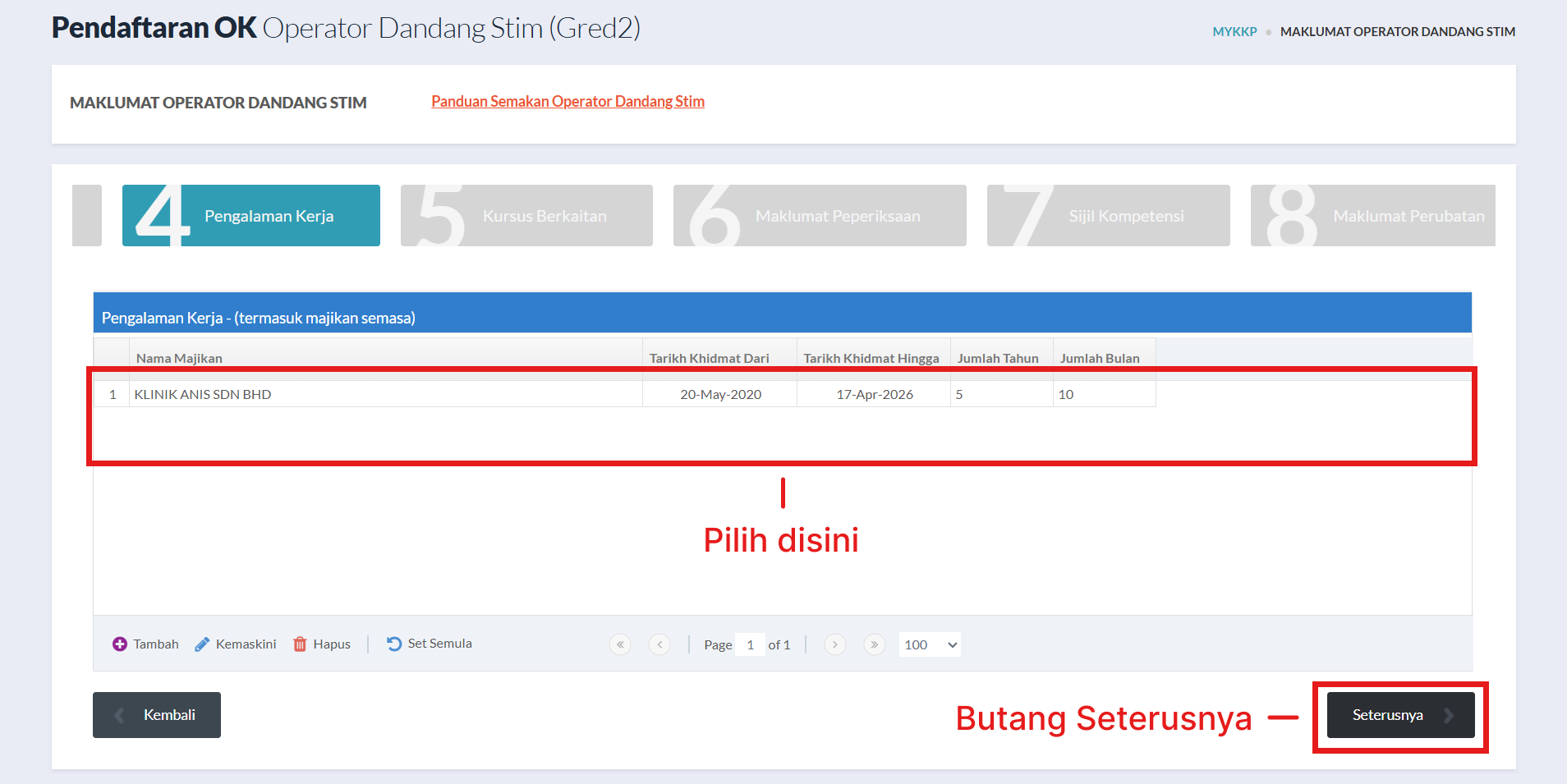 Langkah 2: Masuk Ke Halaman Pendaftaran Operator Dandang Stim (Gred 2)