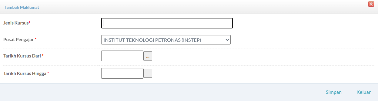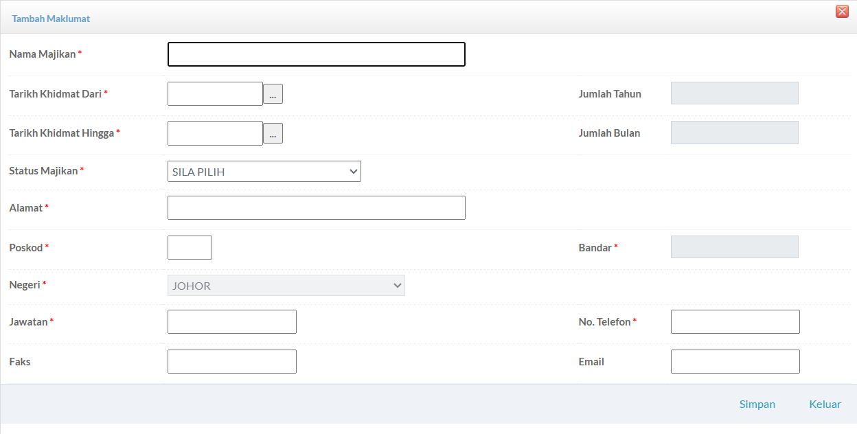 - Klik butang Simpan untuk menyimpan maklumat yang telah diisi.