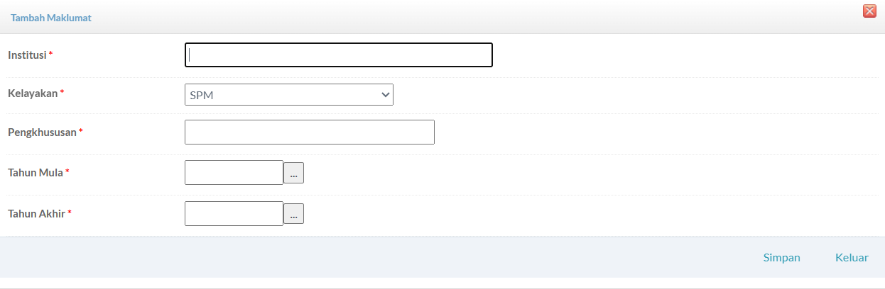 - Isi maklumat pada medan ruangan yang berkaitan.